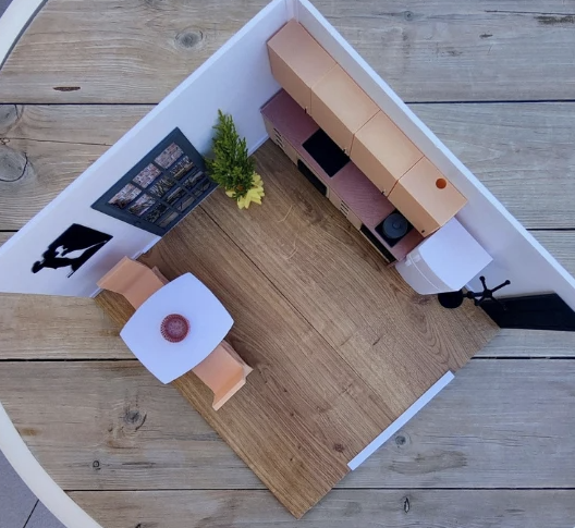 Diseño de cocina modular para una vivienda mínima.